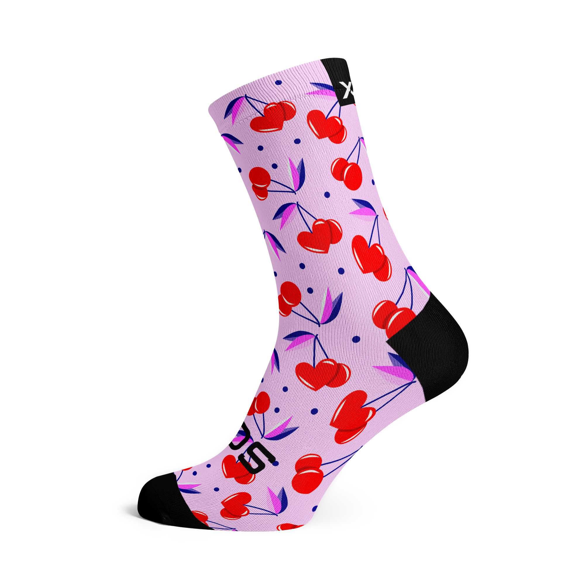 You can be the perfect pair with the Sox Footwear cherry socks. Red cherries shaped in hearts on a pink backdrop, your loved one will cherry-ish you forever.